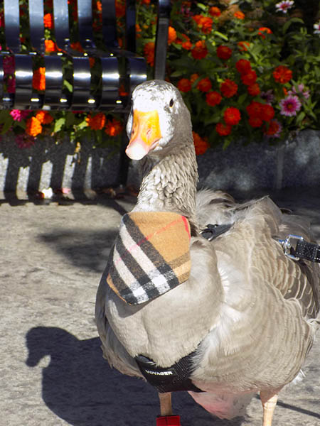 We took Gabby to the farmer's market in the morning and goose dad took these photos. She of course was good as gold and a huge hit. Had her ziploc bag of cucumber pieces and people fed her and petted her. One couple were Italian and had a one year old son. They spoke to him softly in Italian and he absolutely loved Gabby! He couldn't say much, but he fed her her cucumber snacks like a trooper! She is so gentle you can hardly feel her take them. They kept coming back to us because their little son was so taken with Gabby.