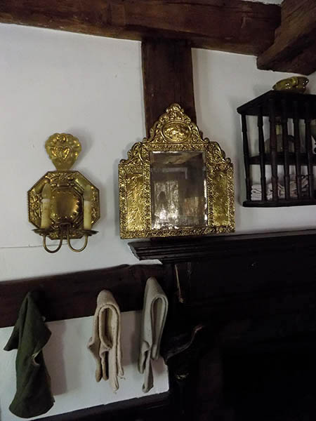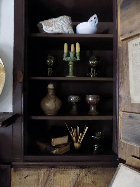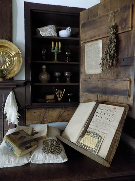 Over the fireplace, a c. 1630 hanging livery cupboard.