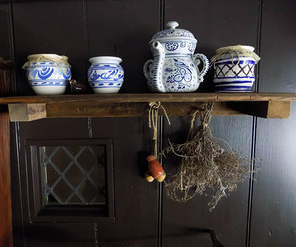 These small livery cupboards were hung in the bedchamber. Food for the light evening meal in the chamber was kept in them.