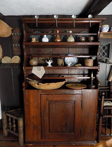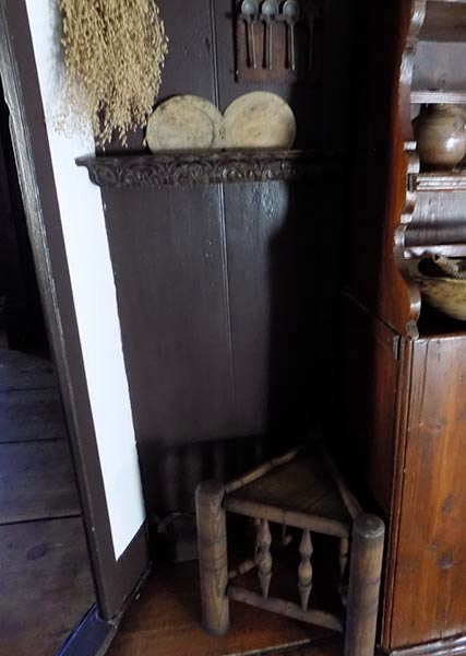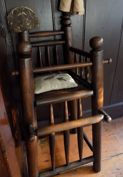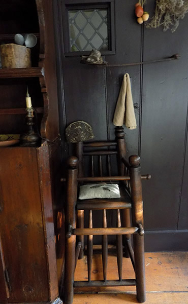 "Dear Mary, I was just checking your pages, how I enjoy seeing all of your wonderful antiques, your fabulous early home and grounds. I also want to tell you how much I love the Bannister arm chair and beam I purchased from you. The more primitive side of the beam is the part you see as it is used as the mantle on my stone fireplace. I have pewter and early lighting on it. And the arm chair, is just the best! It is one of the most special pieces that I have. It is next to my 18th c. server, for lack of a better word, that still retains the early red wash. Hanging on the BB is a small leather purpose bag with a powder horn attached by a slim leather strip. Just thought I would let you know how special the antiques are that I purchased from you.